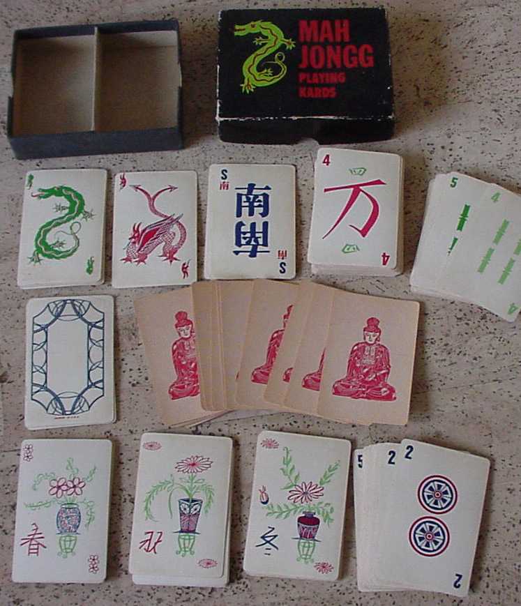 nice old (original) box. Typically, not much effort was spent in producing high-quality cards, as they would never last long due to long and fanatical play. This set has some nice designs on the faces, though. |